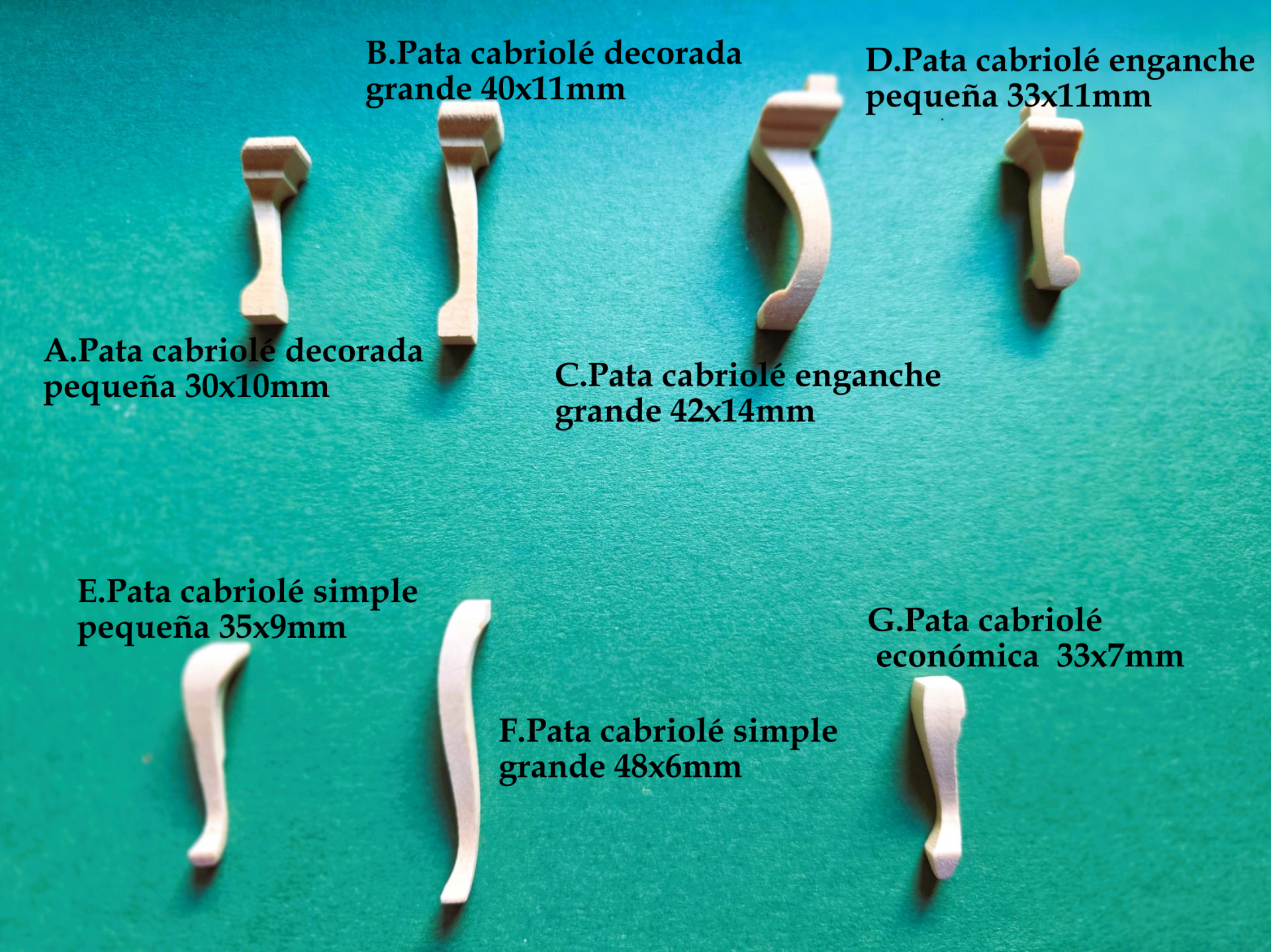 Diversos tipos de pata cabriolé, o curvada.